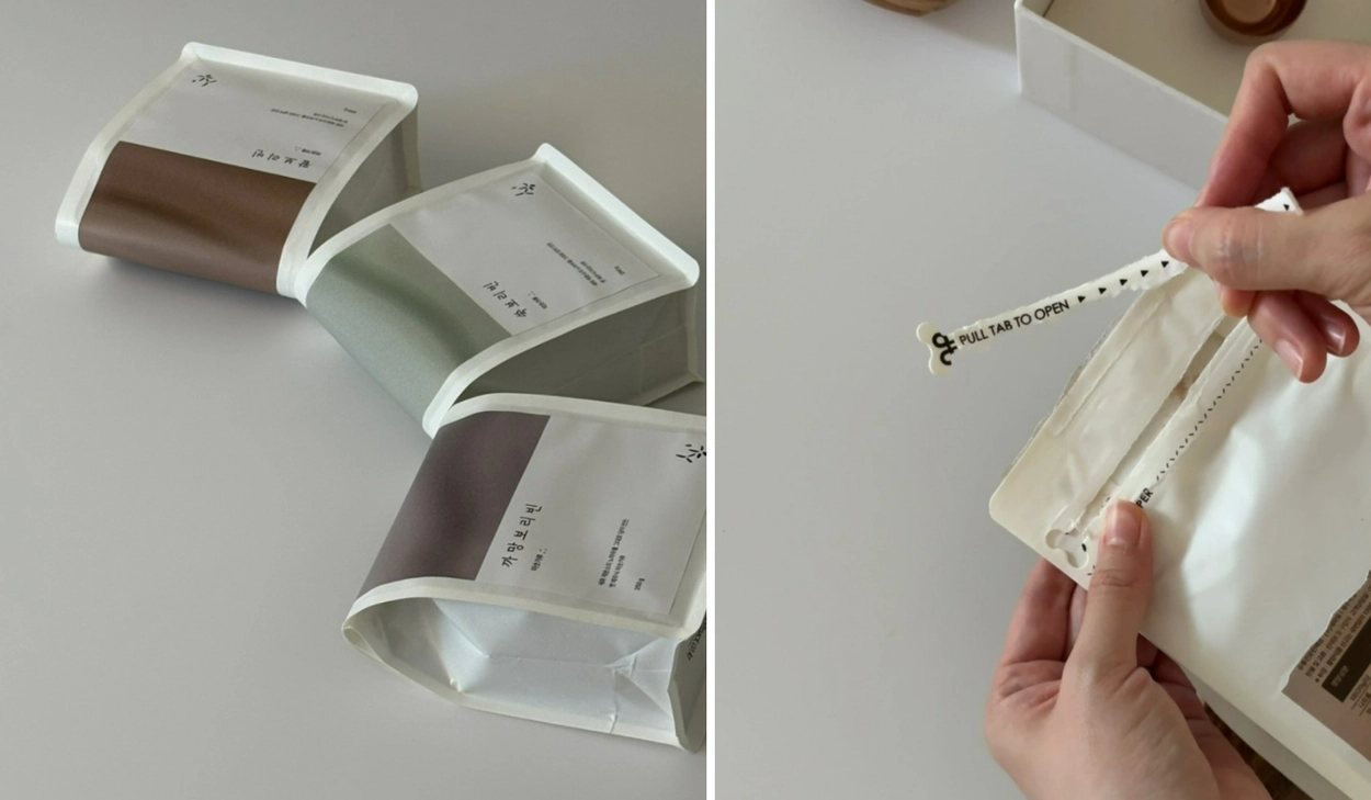 종이를 기반으로 플라스틱과 금속 사용을 줄이고, 산소와 수분을 효과적으로 차단하는 친환경 고기능성 소재 Protego 패키지를 사용합니다.