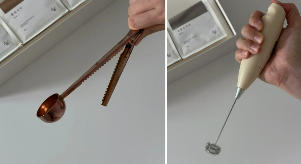스테인리스 집게스푼과 미니 전동 휘핑기(건전지포함) 함께해보세요 !